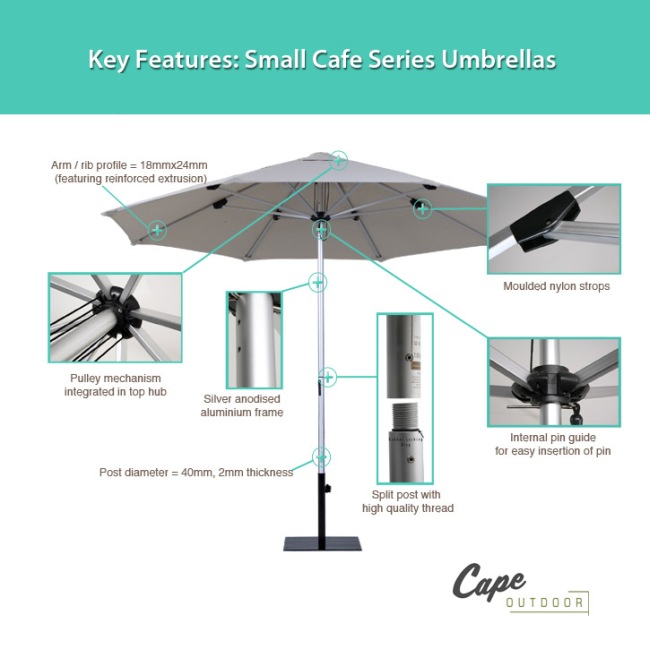 • Easy-action Rope & Pin mechanism makes closing and opening this umbrella a breeze