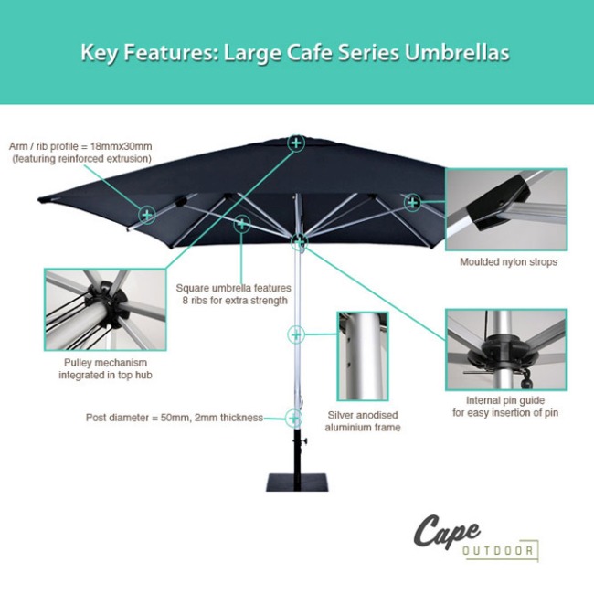 Sizes: 2.8 & 4.2m Octagonal, 2 & 3m Square