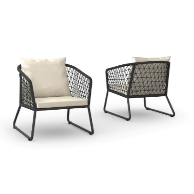 Ohana frame is woven by hand with an Olefin rope wrapping around a sturdy powder coated aluminium frame.