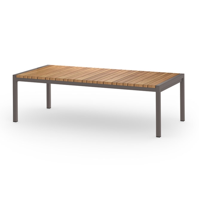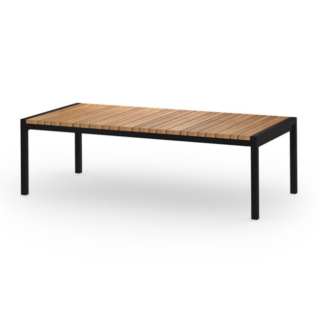 MAMAGREEN ZUDU looks stunning in any location, outdoor or inside. The coffee table is made from powder coated aluminium and a different width recycled teak slats that make this piece subtly stand out from other ranges.
