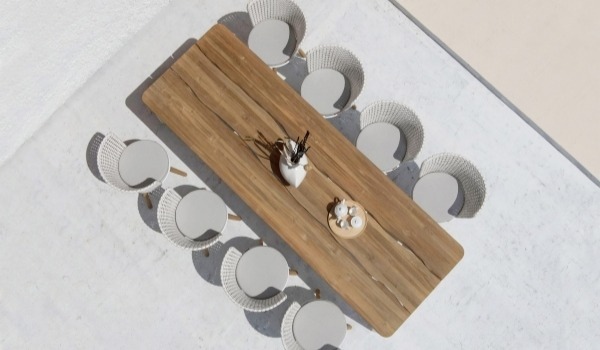 - Storage tips: If not in use, store furniture indoors or under cover. Ensure all surfaces are dry before covering and elevate covers to allow airflow – this is an essential when storing teak tables.